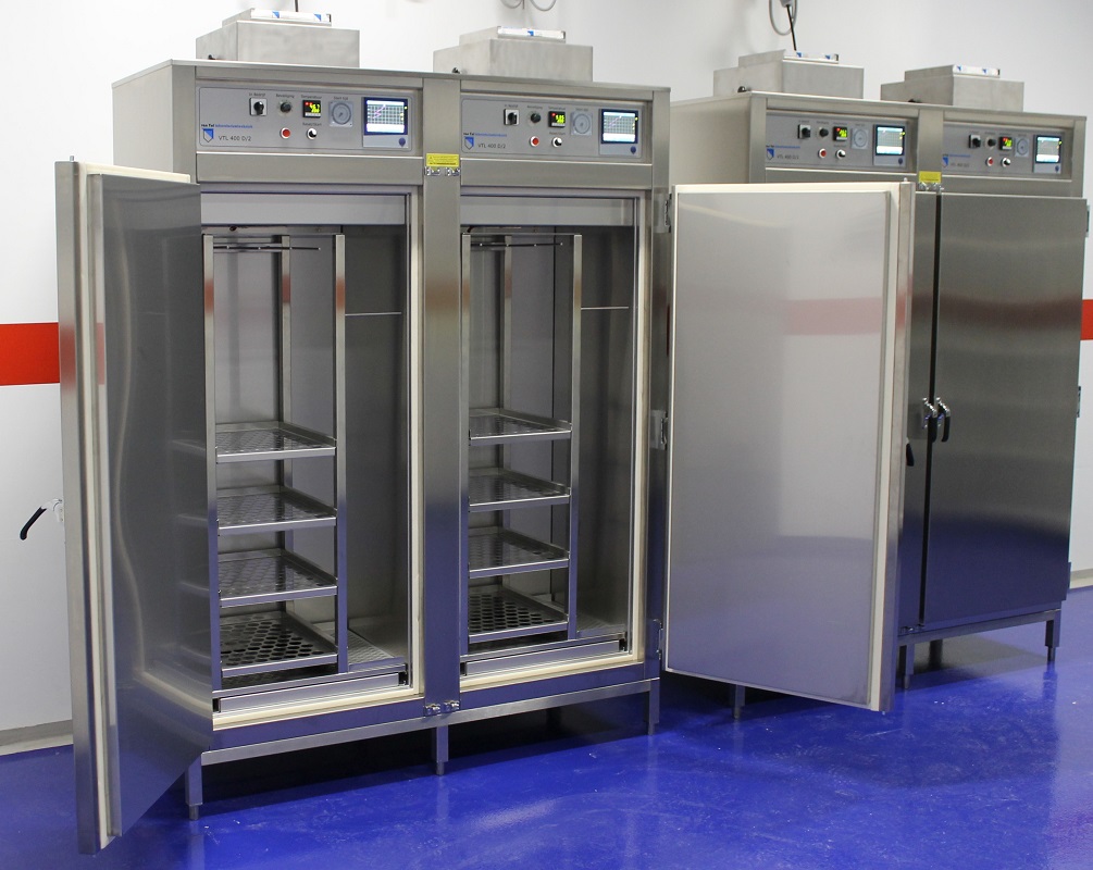 In tegenstelling tot autoclaven wordt hier met droge hete lucht gesteriliseerd